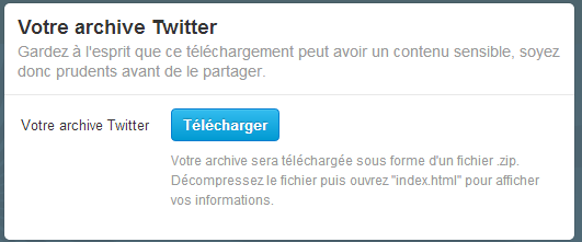 La nouvelle était attendue, et la rumeur revenait de façon récurrente. C’est enfin officiel, Twitter vous offre la possibilité de télécharger les archives de votre compte. Le service de micro-blogging l’a annoncé sur son blog officiel ce lundi matin. Une annonce qui ne manque pas d’interpeller les utilisateurs puisque dans la matinée Twitter était en Trending Topic !