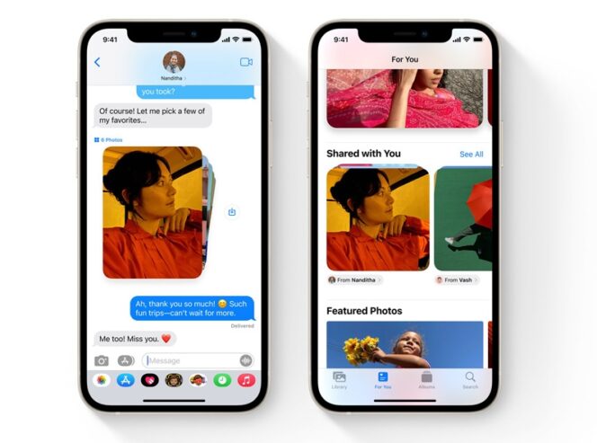 Déjà disponible pour les images depuis quelques années, l’onglet Partagé avec vous regroupe désormais tous les liens, images et autres contenus échangés avec une personne ou un groupe de personnes dans Messages. La fonctionnalité s’intègre également dans les applications qui accueillent du contenu partageable, c’est-à-dire Photos, Safari, Apple Music, Apple Podcasts et Apple TV.