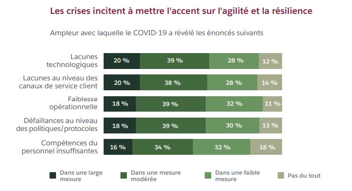 Du côté des professionnels du service client, ces différents changements ont révélé d’importantes lacunes parmi lesquelles : un manque de compétences technologiques, des canaux de service client non optimisés ou encore des faiblesses opérationnelles.