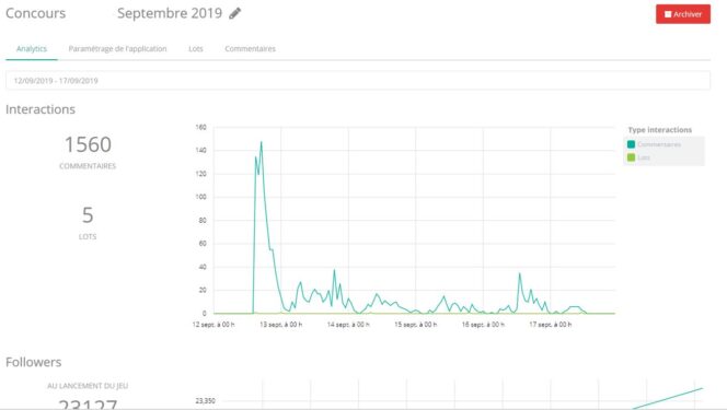 Plusieurs avantages nous sautent aux yeux en utilisant cette solution. Tout d’abord, plus de bricolage pour le tirage au sort, plus de main innocente qui pointe au hasard dans la liste avec le risque de voir le service juridique vous taper sur les doigts, plus de fichier Excel qui plante. Clairement, ce n’est pas notre moment préféré lors d’un jeu-concours, donc autant l’automatiser. Le back-office nous permet de faire un tirage simple et juste. Le gain de temps est réel, de même que le plaisir d’utiliser une interface pro. Et bien sûr, les statistiques rassemblées sur le back-office nous donnent de précieuses indications sur le succès des concours que l’on a lancés. Gagnant du côté de nos followers donc, mais gagnant aussi de notre côté.