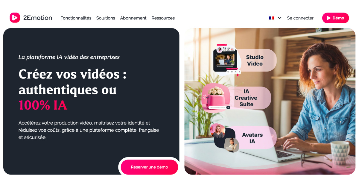 2Emotion est une solution SaaS française qui permet aux entreprises de produire des vidéos professionnelles en toute autonomie. Conçue comme un studio vidéo hybride, la plateforme combine la créativité humaine et l’IA pour accélérer vos cycles de création tout en réduisant nettement vos coûts de production. De la captation authentique filmée par les équipes aux contenus 100 % générés par l’IA, 2Emotion offre ainsi une plateforme unique pour expliquer, former et valoriser votre marque avec un rendu toujours maîtrisé.