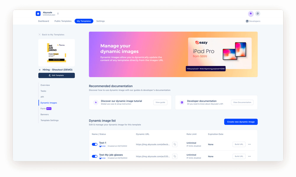 Abyssale est une plateforme qui accompagne les graphistes et les professionnels du marketing dans la conception et la déclinaison de designs. La solution est accessible en ligne, depuis n’importe quel navigateur web.