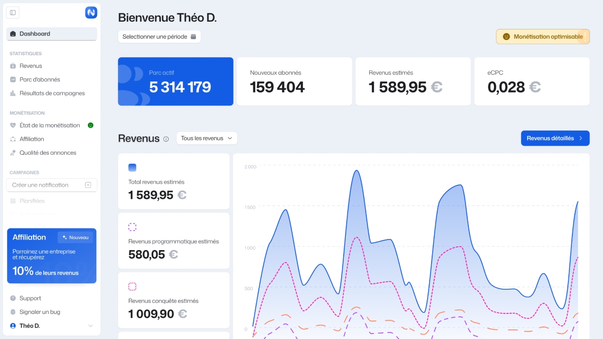 La plateforme propose un dispositif de monétisation des notifications web push à destination des éditeurs et médias, via la fonctionnalité « side-car ». Cette dernière permet d’ajouter des notifications publicitaires en complément des envois éditoriaux déjà réalisés, sans nécessiter de changement d’outil ni de modification des usages en place.