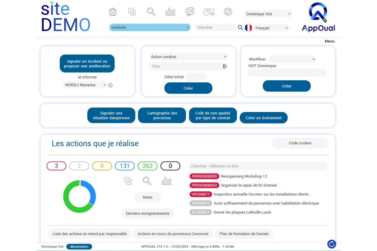 AppQual facilite la conduite de vos projets grâce à des outils conçus pour structurer et suivre efficacement vos plans d’action. Grâce à un tableau de bord personnalisé, vous pouvez accéder à une vue ordonnée de vos projets et de votre feuille de route, notamment grâce à un système de priorisation automatique personnalisable, des rappels automatiques, des KPI actualisés et des rapports automatiques.