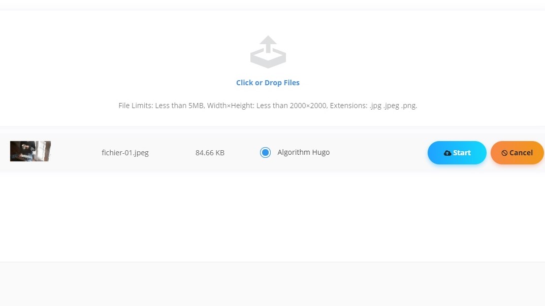 Sans création de compte, vous obtenez 50 crédits par mois, et vous pouvez télécharger des photos de 2 Mo maximum avec un rapport hauteur/largeur ne dépassant pas 1200×1200 pixels. Les formats de fichiers supportés sont les suivants : .jpg ou .png.
