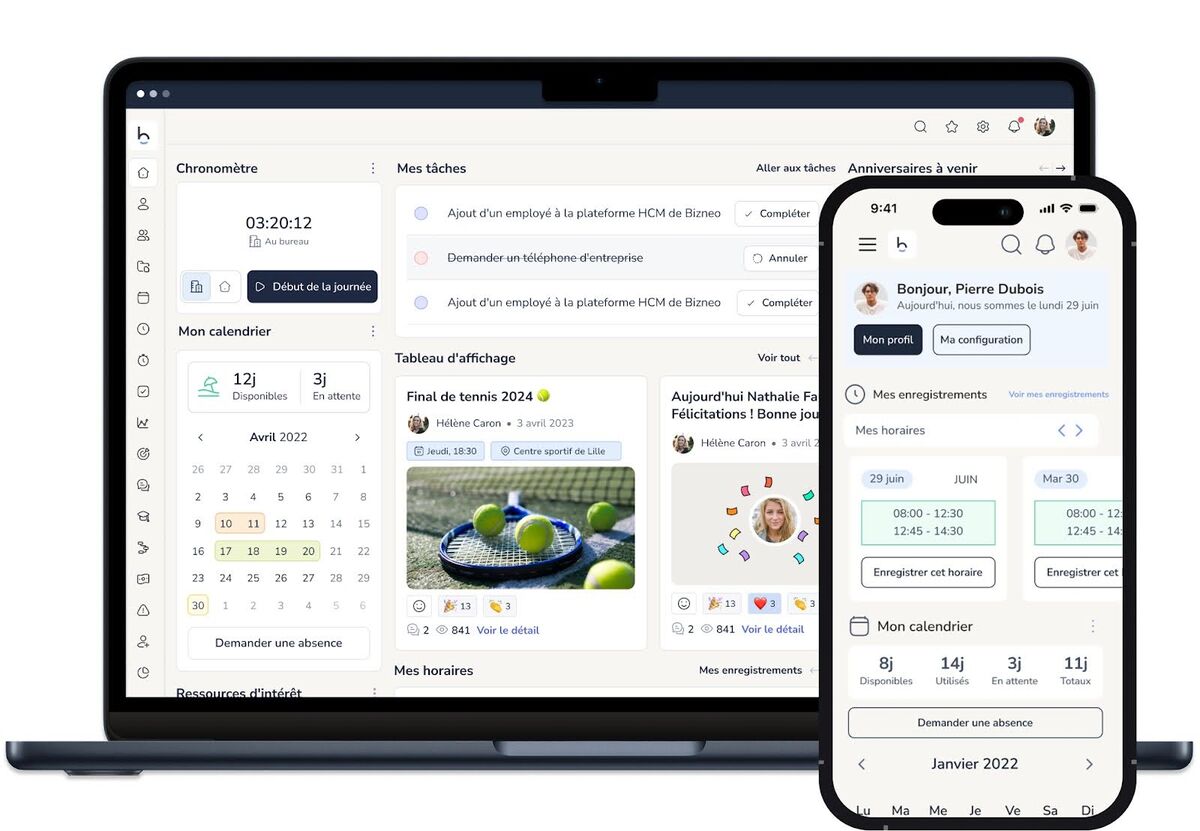 Bizneo HR centralise ainsi l’intégralité du cycle de vie du collaborateur, de l’attraction des talents jusqu’à l’offboarding. La plateforme offre également une gestion à distance complète grâce à ses applications iOS et Android, permettant aux équipes de rester connectées où qu’elles se trouvent.