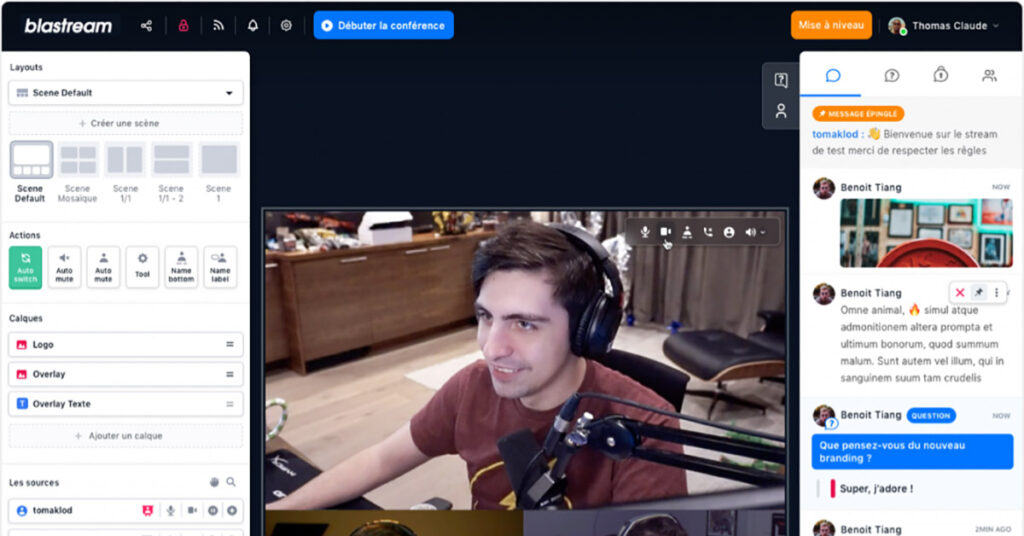 Blastream est une plateforme de production et de diffusion de livestreaming vidéo. Accessible depuis un navigateur web, Blastream s’adresse à des structures de toutes tailles et issues d’une variété de secteurs d’activité (communication, culture, éducation, etc.). Elle permet de proposer à son audience une expérience interactive et personnalisée.