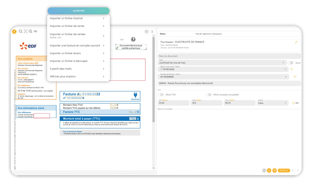 - Import, classement et traitement de documents : cette option vous permet de créer un espace sécurisé pour le partage et le stockage de fichier avec votre comptable.