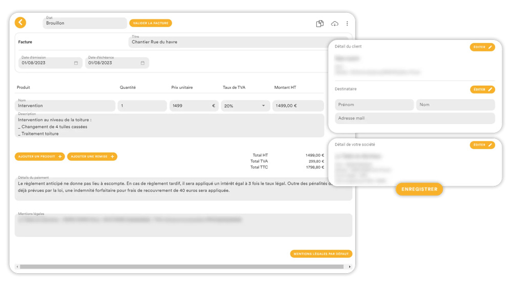 - Module de facturation et note de frais : vous pouvez importer vos factures par email, scan, photos ou par glissé/déposé. La gestion financière est ensuite automatiquement mise à jour. Il est aussi possible de créer des factures, devis, bons de livraison.