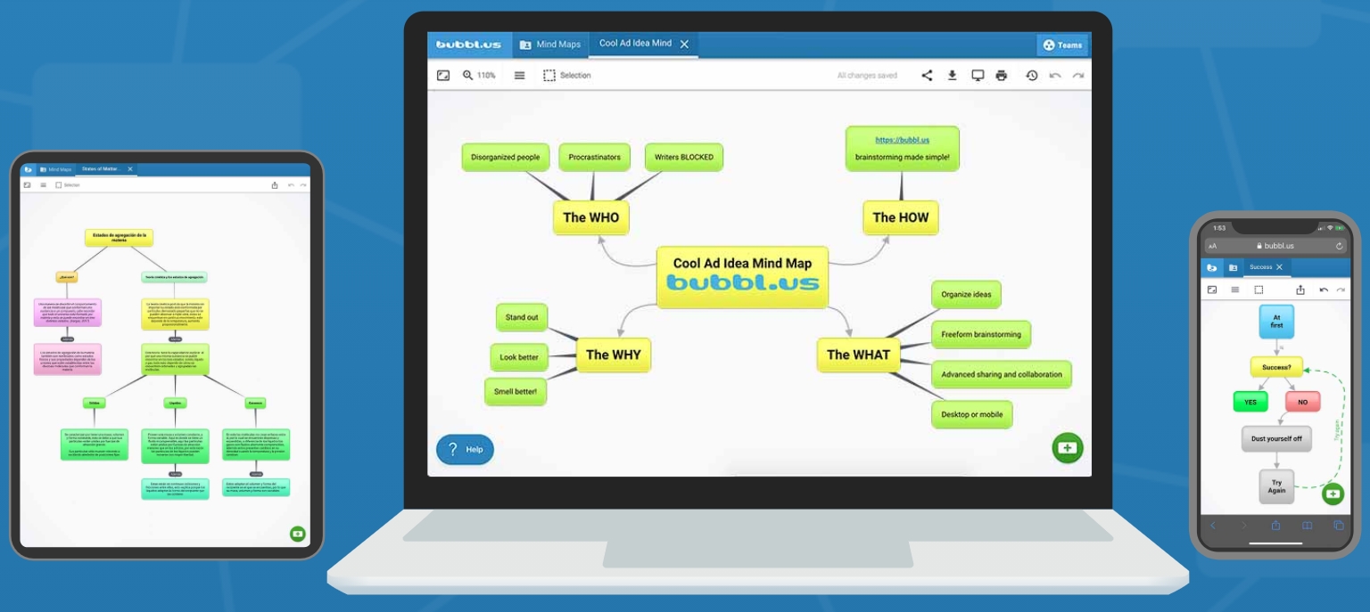 Bubbl.us est un outil de mind mapping qui permet de créer des cartes mentales personnalisables. Il est destiné à tous ceux qui cherchent un outil collaboratif pour créer et modifier des cartes à plusieurs et en temps réel. Ce type de logiciel est particulièrement adapté dans le cadre de brainstorming professionnel, mais aussi dans le milieu de l’éducation pour favoriser les travaux de groupe.
