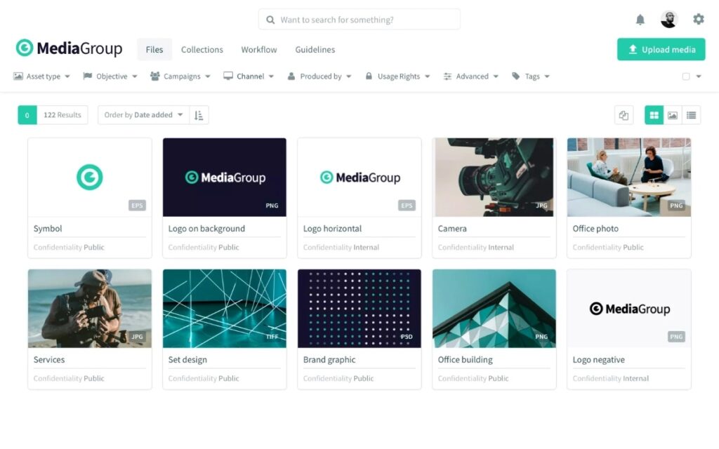 - Recherche de documents : la plateforme est dotée d’une structure de filtrage qui lui permet de trouver instantanément les assets que vous recherchez,