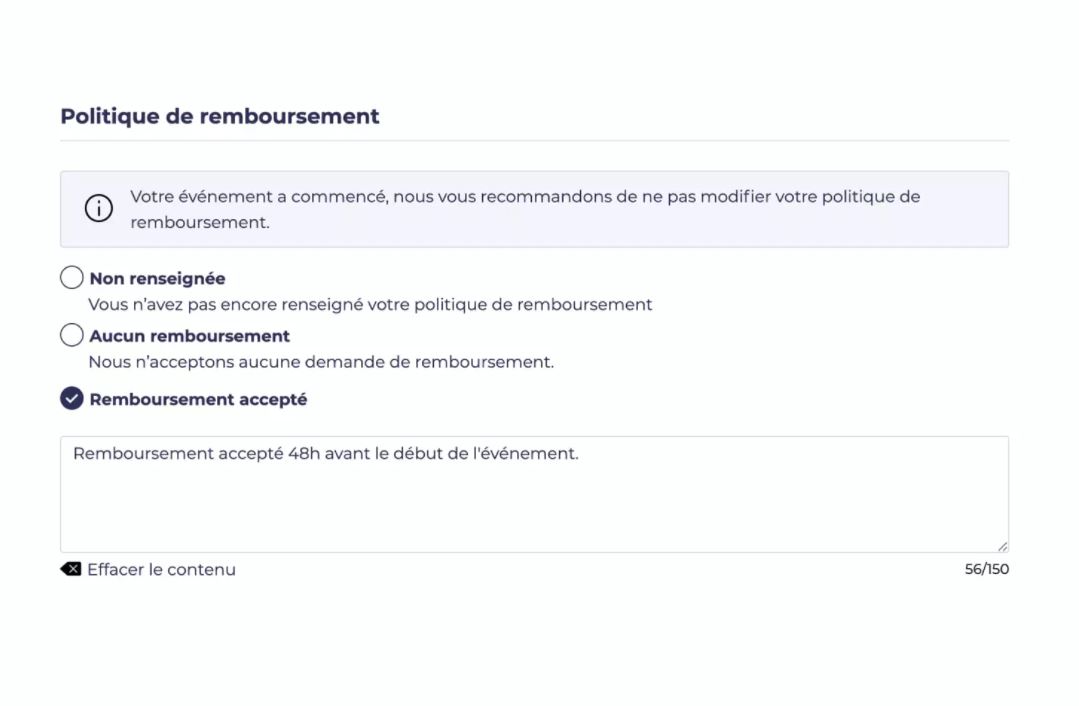 - option pour rembourser vous-même vos participants si nécessaire.