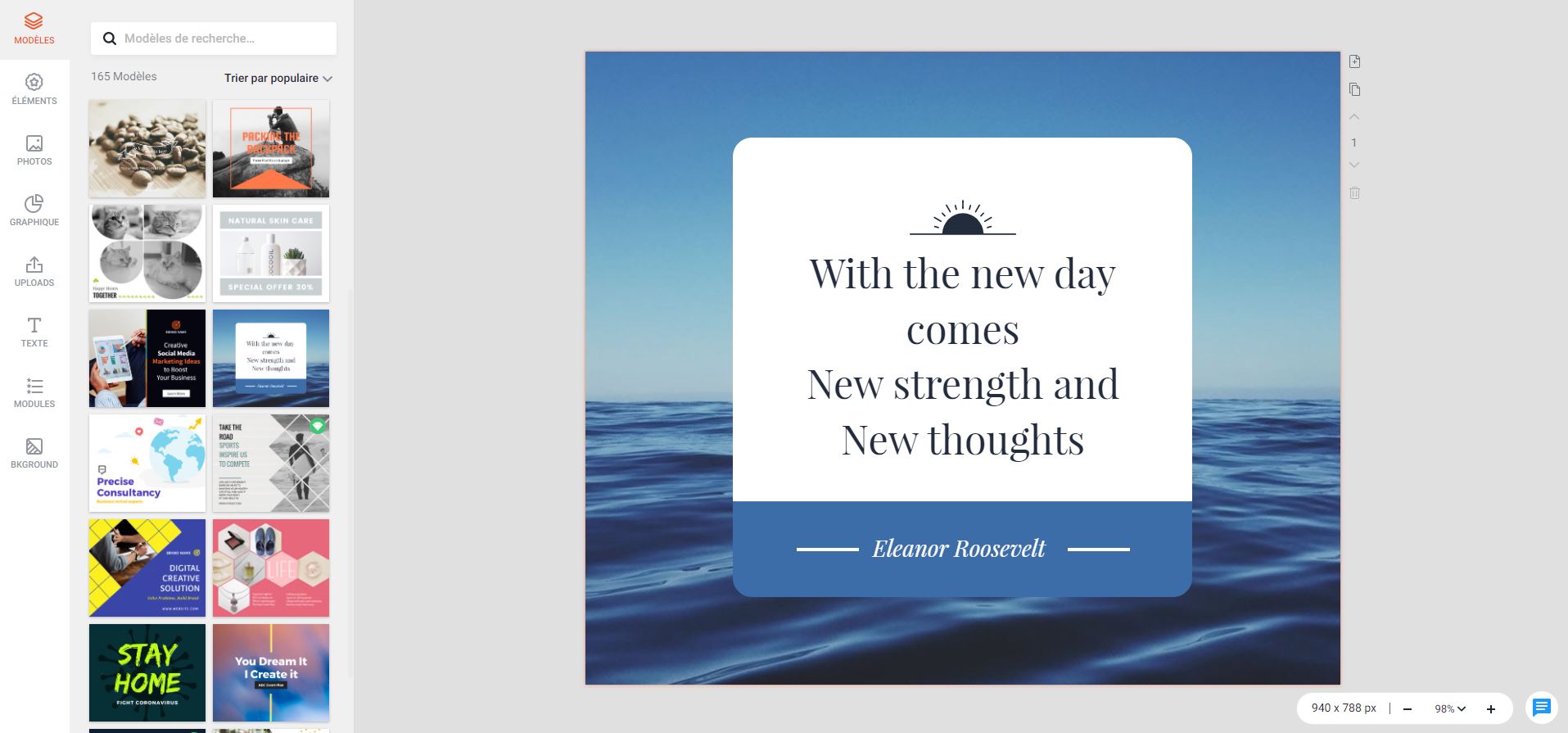 - Utiliser des « modules » : ce sont des modèles de graphisme qui associent plusieurs images (ou plusieurs images et textes) ensemble pour vous faire gagner du temps.