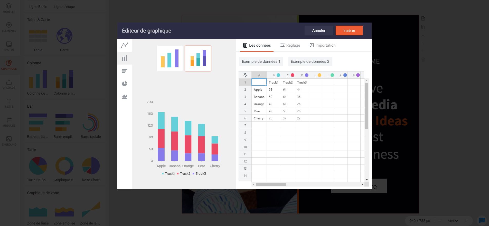 - Créer des graphiques en lignes, en colonnes, en camemberts ou encore en zones.