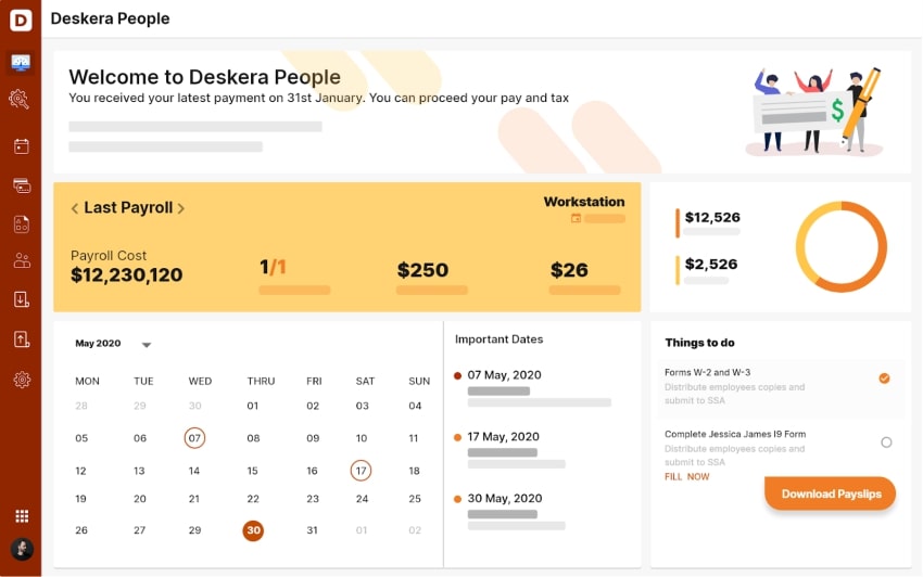 - gestion des ressources humaines : le logiciel propose un système de gestion du personnel avec une base de donnée des employés, mais aussi une gestion de la paie adaptable selon les besoins (hebdomadaire, bimensuelle, deux fois par mois ou mensuelle). Deskera permet aux entreprises de gérer les congés dans le sens large : politiques et règles relatives aux congés, demandes, approbations…