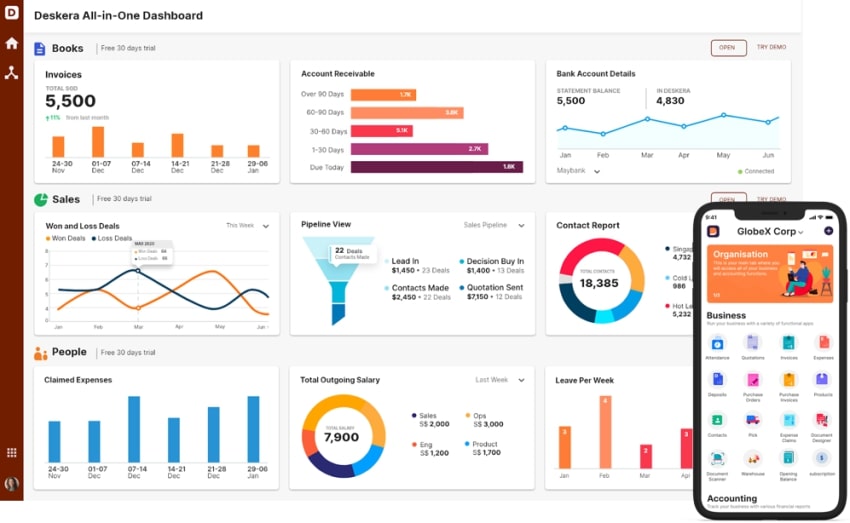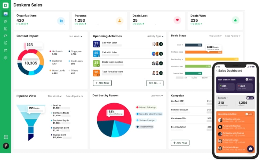 Deskera est un logiciel de relation client destiné aux petites entreprises qui permet de simplifier et d’automatiser les processus métier à partir d’une seule plateforme générale.