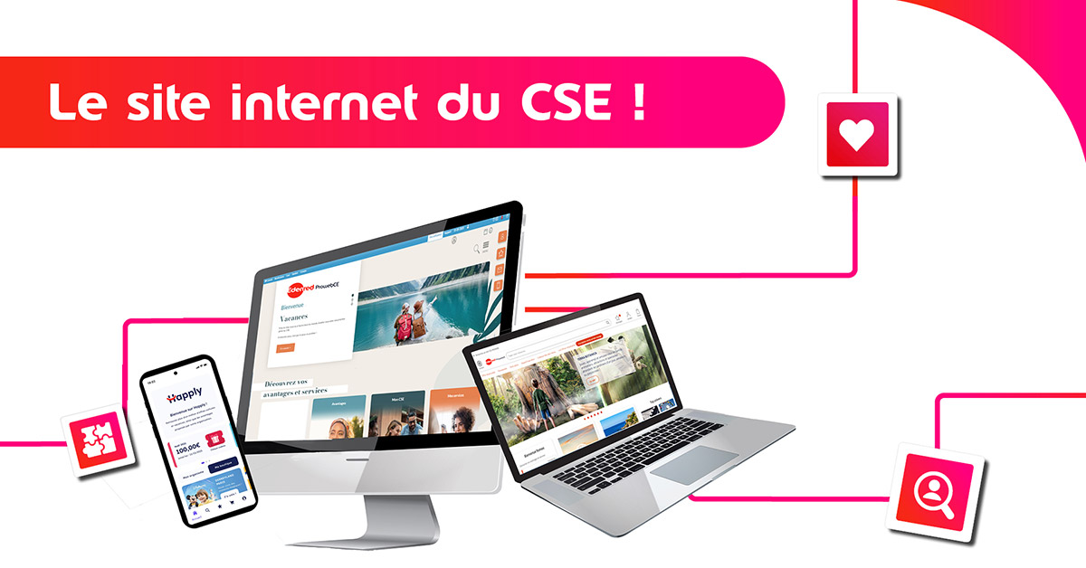 - Des canaux de communication : Edenred Solutions CSE permet de créer et gérer un site web. Vous pouvez choisir votre design parmi ceux proposés, ajouter des contenus (explications sur le fonctionnement du CSE, jeux concours, actualité, etc.), donner accès aux divers avantages et envoyer des emails. Des applications mobile iOS et Android sont aussi à votre disposition.