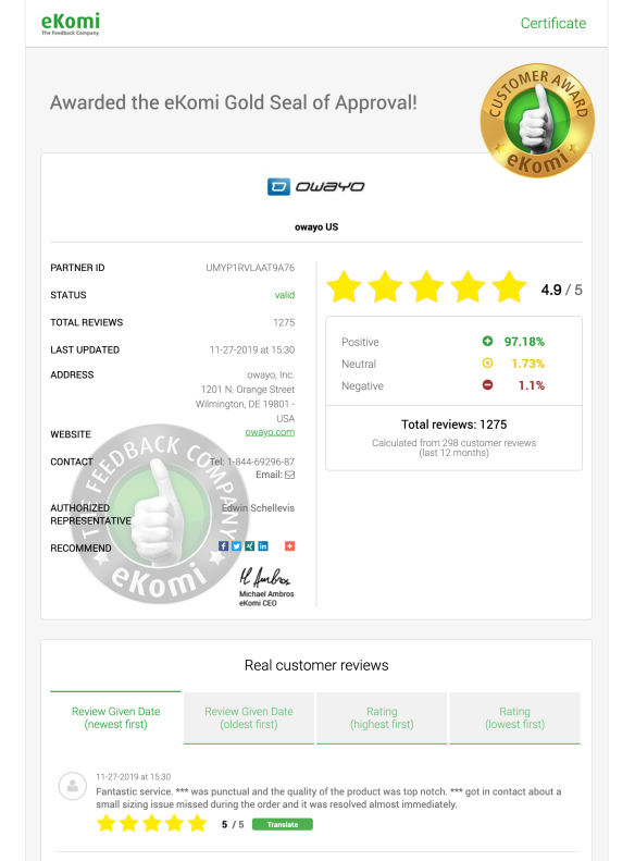 Concrètement, une fois qu’une transaction a été effectuée, une demande d’avis est envoyée au client. L’avis est ensuite contrôlé par une équipe de relecture humaine d’eKomi avant publication afin de s’assurer que le contenu respecte les conditions générales d’utilisation.