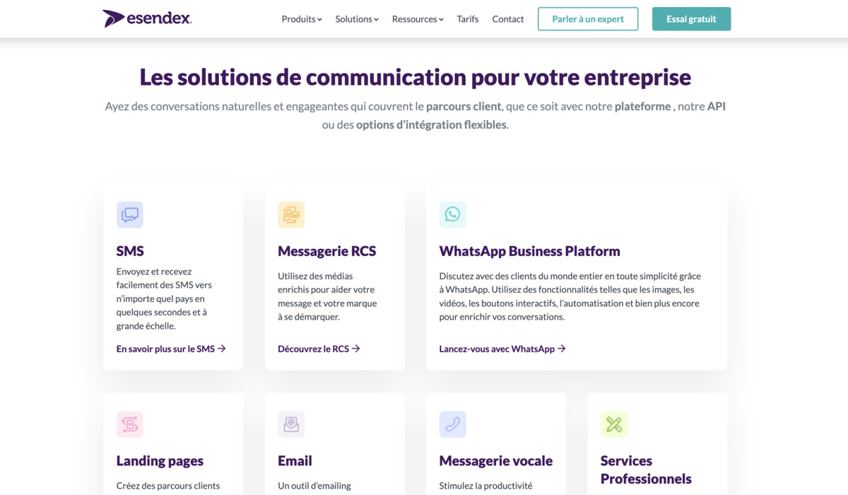 La solution administre différents canaux de messagerie, dont le SMS, le RCS et WhatsApp Business Platform. L’outil regroupe les messages et les conversations dans un espace centralisé, indépendamment du canal utilisé, pour pouvoir consulter l’historique des échanges dans un cadre commun. Esendex peut être utilisée de manière autonome ou intégrée à des systèmes existants grâce à son API, ce qui permet de connecter la plateforme à des outils tiers tels que des CRM, des sites web ou des applications métiers.