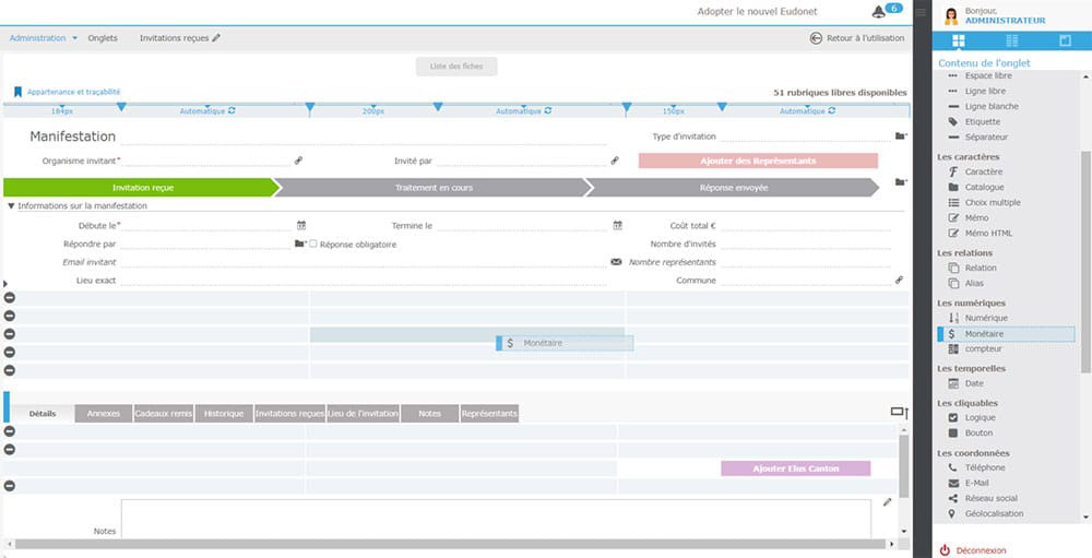 Il est possible de bénéficier d’une version d’essai du logiciel. Un échange avec un conseiller Eudonet permettra de personnaliser votre interface pour l’essai.