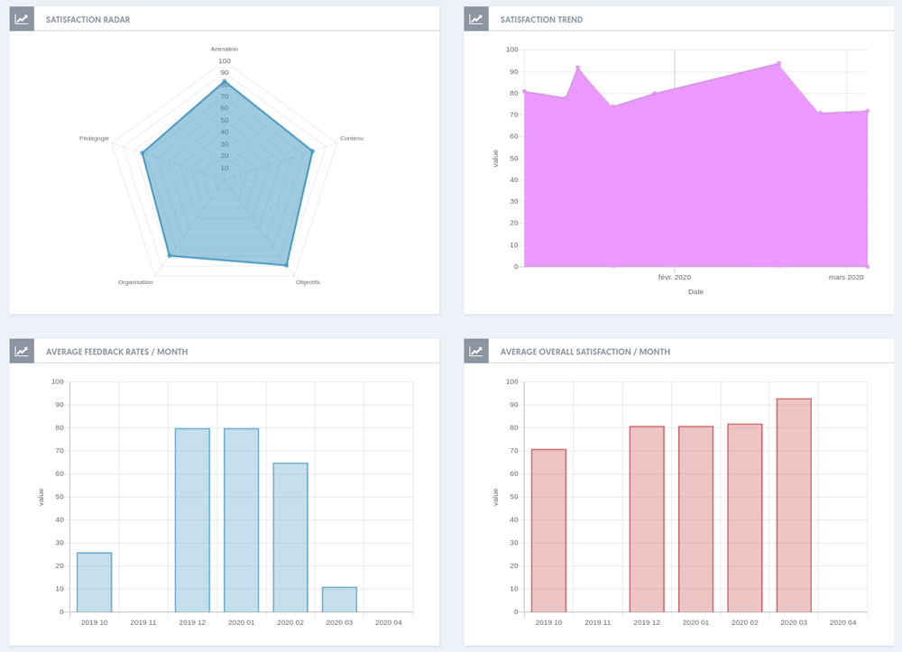 - Gratuite : 100 évaluations par mois, 100 enquêtes par mois, 20 utilisateurs, import de fichiers, modules e-learning, animation de formation.