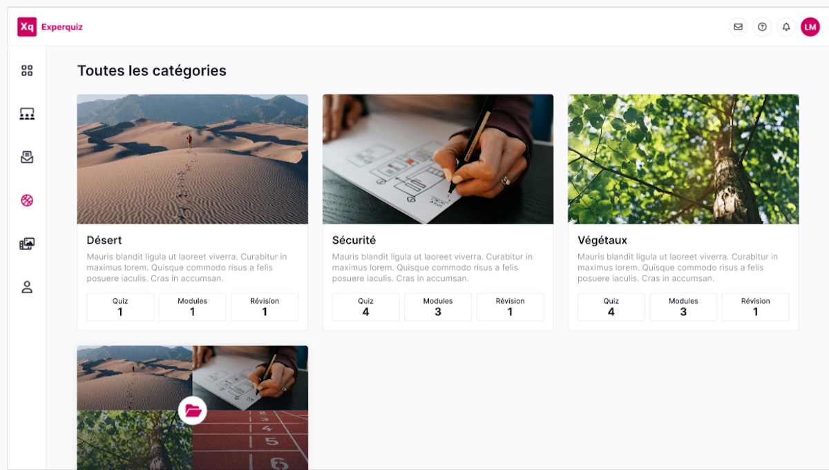 Experquiz est une solution tout-en-un dédiée à la création et à la gestion des évaluations, des formations et des compétences. Elle permet aux entreprises, organismes de formation et établissements d’enseignement de concevoir des quiz, des modules e-learning, des certifications et des enquêtes, tout en suivant les résultats et les progrès des apprenants.