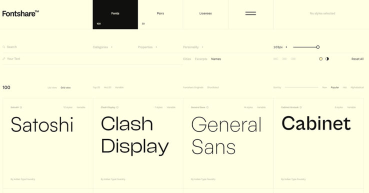 Fontshare est une plateforme en ligne qui permet de télécharger ou de copier gratuitement des polices d’écriture pour un usage professionnel ou personnel. L’outil propose ses propres polices d’écritures, et héberge également des typographies créées par des éditeurs externes, en open source. Certains styles sont en closed source, c’est-à-dire, qu’ils sont disponibles uniquement sur le site Fontshare.