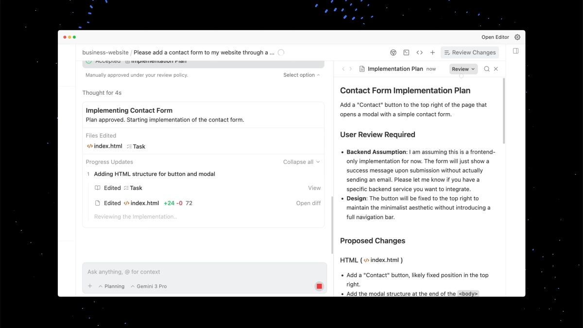 - Génération d’artefacts : les actions des agents produisent des livrables exploitables (plans, captures d’écran, enregistrements) facilitant la traçabilité et la validation du travail effectué.