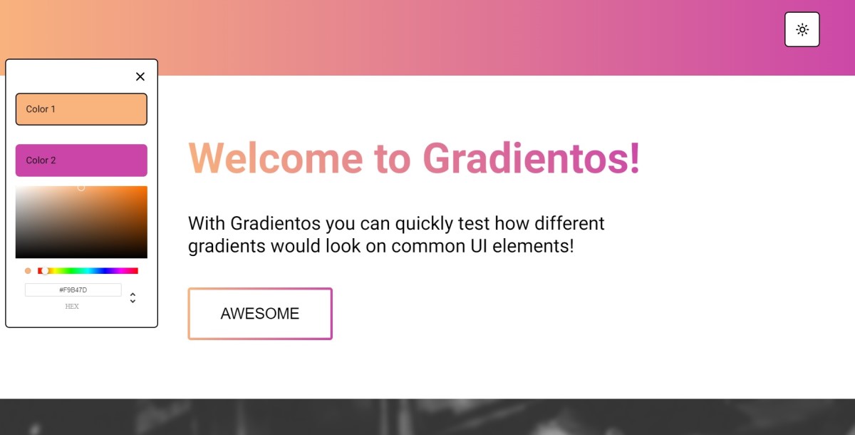 Gradientos est un outil en ligne qui simplifie la recherche de dégradés. Vous pouvez tester en temps réel le rendu d’un dégradé sur l’interface utilisateur du site web. Le choix des couleurs est simple et le résultat du dégradé est immédiat.