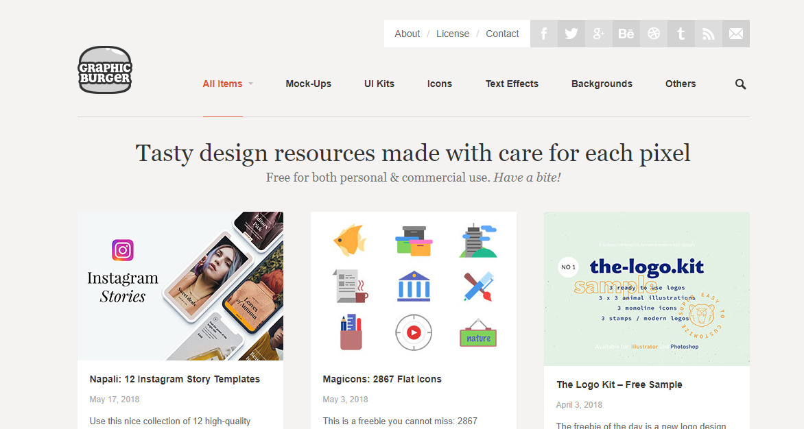 GraphicBurger est une plateforme en ligne proposant une vaste collection de fichiers téléchargeables tels que des mockups, icônes, effets visuels etc, dans le but de faciliter le travail des designers . La grande majorité des éléments sont mis à disposition gratuitement.