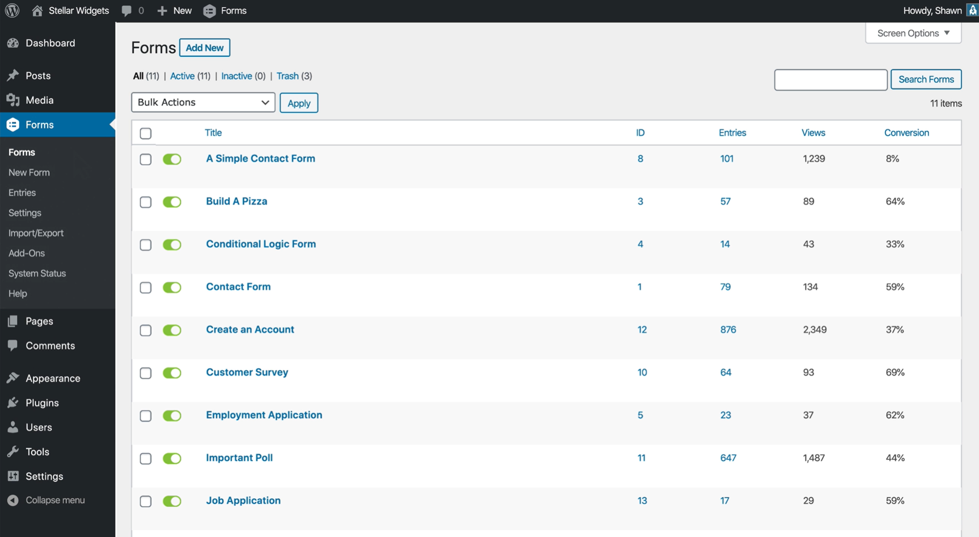 Gravity Forms est un plug-in WordPress dédié à l’intégration de formulaires sur les sites web. Grâce à son éditeur, vous pouvez sélectionner les champs souhaités, puis les intégrer en un clic sur votre site. Vous avez à disposition plus de 30 champs de formulaires existants pour gagner du temps sur la création.