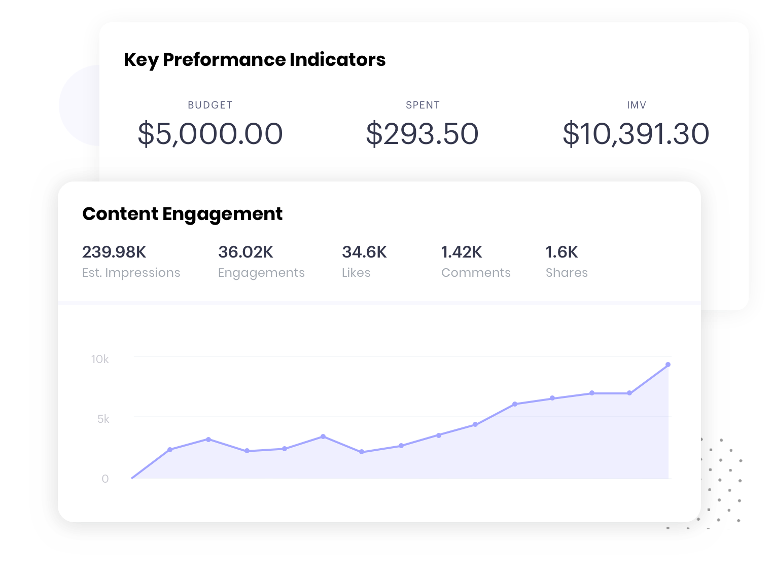Vous pouvez analyser vos campagnes en suivant tous les KPI tels que le budget, les dépenses, les revenus, les conversions, la valeur médiatique, etc. Vous pouvez également suivre les performances du contenu des influenceurs grâce aux informations sur l’engagement. Le tableau de bord permet d’évaluer l’ensemble du programme d’influence et de surveiller la croissance de la marque. Enfin vous pouvez créer des rapports personnalisés sur les données qui vous intéressent le plus.