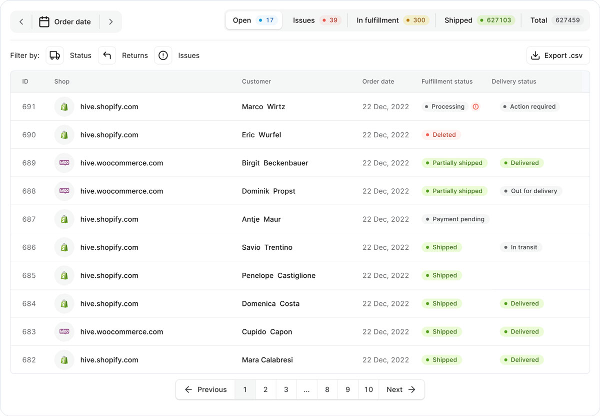 - Transporteurs : Hive met à disposition de ses utilisateurs une solution multi-transporteurs pour s’assurer d’obtenir les meilleurs tarifs, délais de livraison et expérience client.