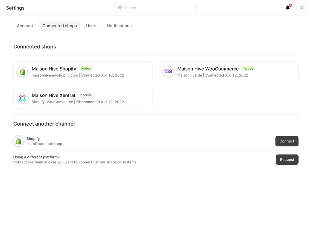 - Retours : l’outil offre la possibilité de définir des règles automatiques pour les retours et les remboursements et met à disposition des clients finaux un portail personnalisé pour faciliter ce processus.
