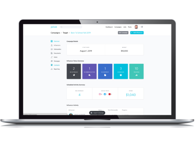 L’outil s’adresse aux marques qui voudraient lancer des campagnes de marketing sur les réseaux sociaux avec des influenceurs. Julius est destiné à ceux qui veulent gagner du temps en regroupant toutes les fonctionnalités du marketing d’influence dans un seul logiciel.