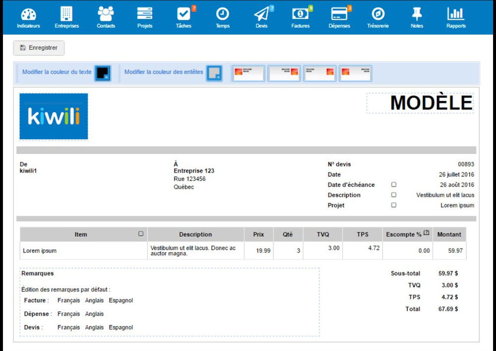 - Devis : Kiwili simplifie la création de vos devis. Il est possible de relancer et de convertir vos devis en facture facilement.