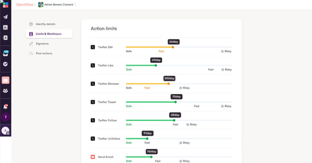 - Séquences de prospection personnalisées et automatisées : le parcours de prospection de chaque prospect s’adapte aux informations disponibles recueillies (email pro/perso, numéros de téléphone, profils LinkedIn et X).