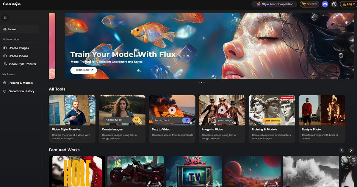 LensGo est une solution qui permet de générer des images et des vidéos grâce à l’intelligence artificielle. Elle est disponible directement via votre navigateur web. Il est possible de visualiser certaines créations des autres utilisateurs sur la page d’accueil de LensGo.