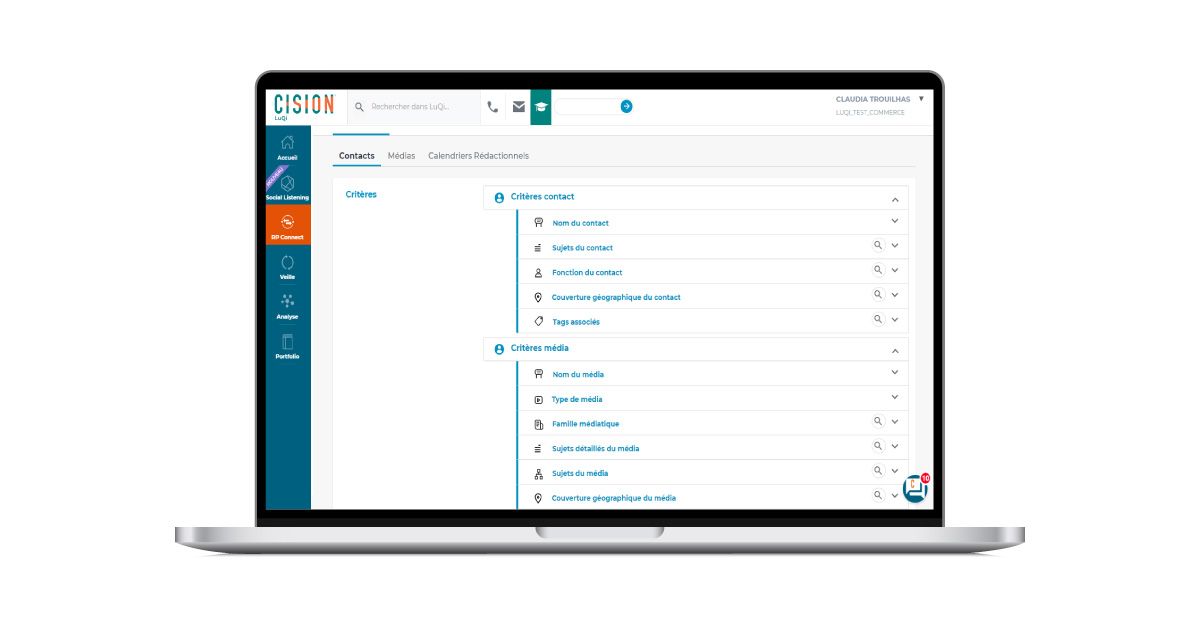 - Identification et connexion avec les journalistes et les médias : la plateforme propose l’accès à une base de données médias pour rechercher, cibler et sélectionner des journalistes et des relais d’influence.