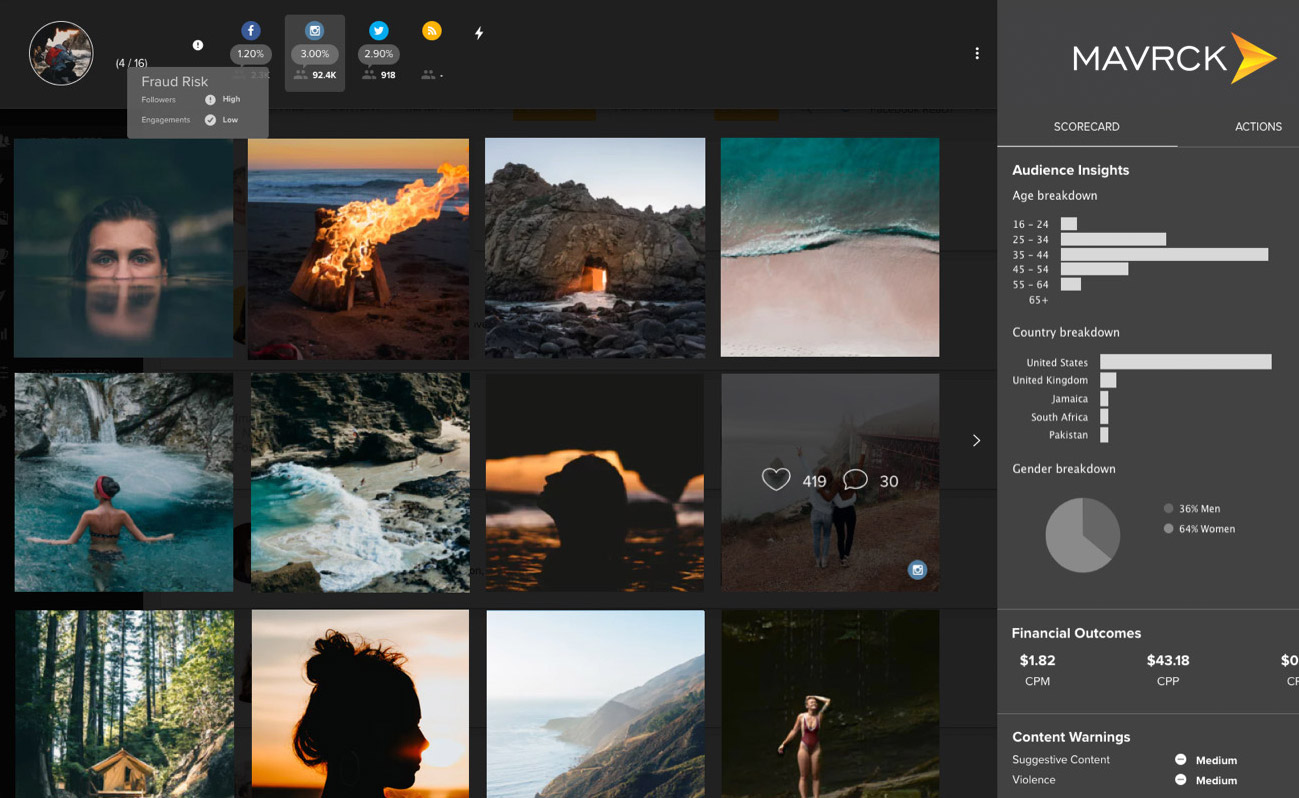 Mavrck est une plateforme de marketing d’influence qui regroupe des profils d’influenceurs, dans le but de mettre en relation les marques avec les influenceurs pour créer du contenu de marque. Elle aide les entreprises à gérer leurs campagnes de marketing d’influence de A à Z. Mavrck recense plus de 2,7 millions de profils d’influenceurs.