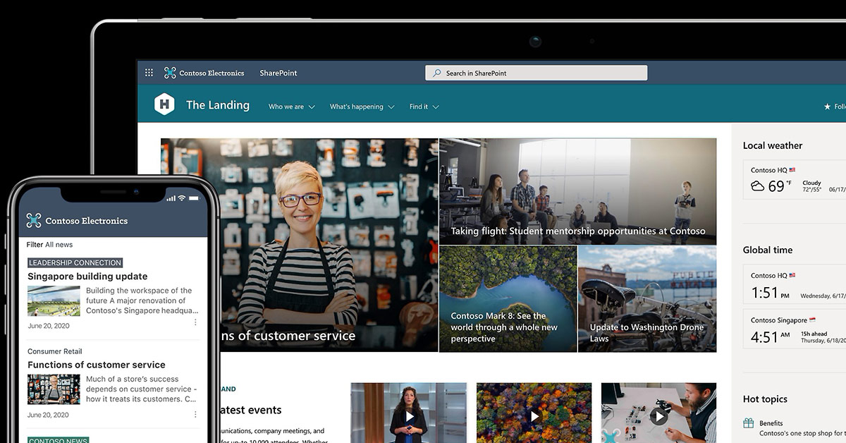 Microsoft SharePoint est un outil de la suite Microsoft 365 qui permet de gérer et partager du contenu entre collaborateurs. Utilisée comme Intranet, cette solution gère tout type de contenu (fichiers, images, vidéos, listes dynamiques, etc.) et permet de le partager au sein d’une entreprise ou d’une organisation. SharePoint est une application accessible depuis l’interface de Microsoft 365, à partir d’un navigateur web et sur tous les types de supports. Une application mobile est également disponible sur iOS et Android.