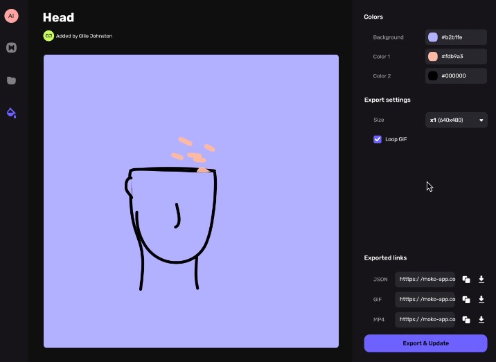 - l’exportation de vos fichiers aux formats MP4, GIF, PNF et JSON,