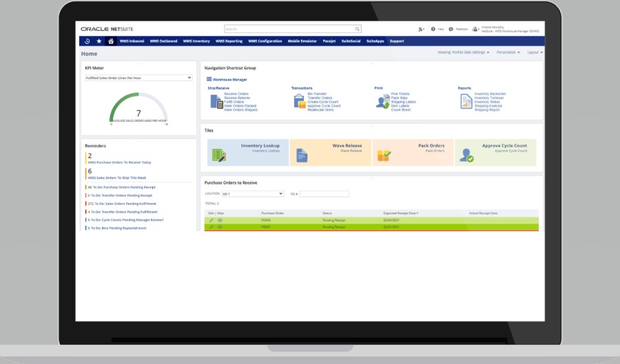- Gestion d’entrepôt : NetSuite Warehouse Management vous permet d’optimiser les opérations d’entrepôt au jour le jour, avec des tâches d’entrée et de préparation, gérées des appareils RF, et des fonctionnalités avancées telles que la gestion des vagues de préparation, la mise en carton, les mises à jour des stocks en temps réel ou encore les intégrations du système d’expédition.