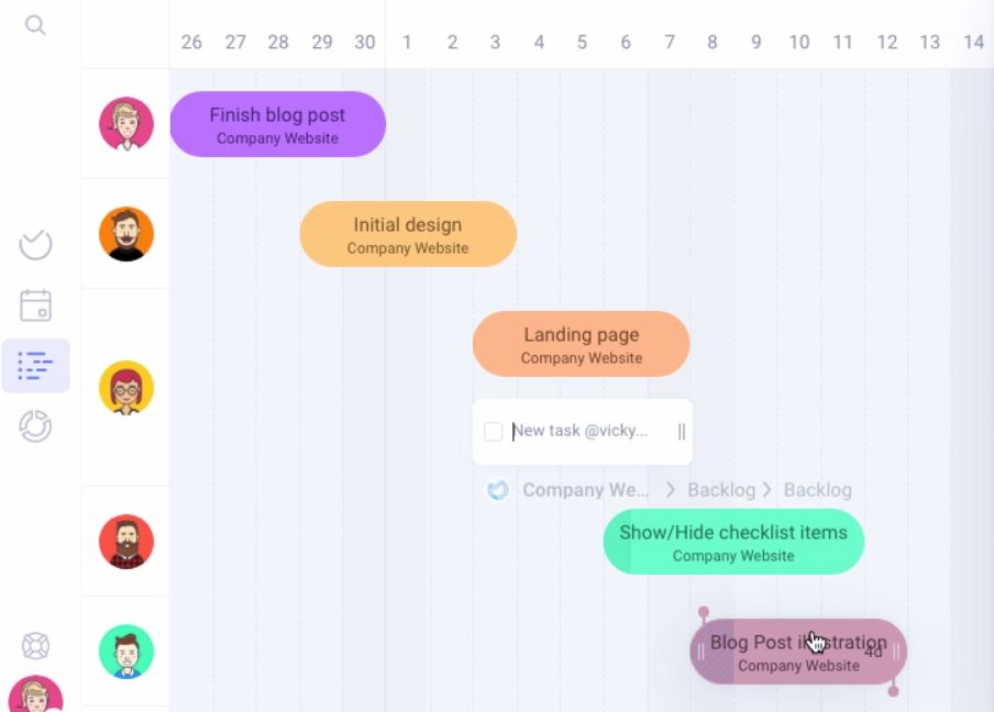 - filtres de tâches : filtres par membre d’équipe, par statut de tâche, par date d’échéance…