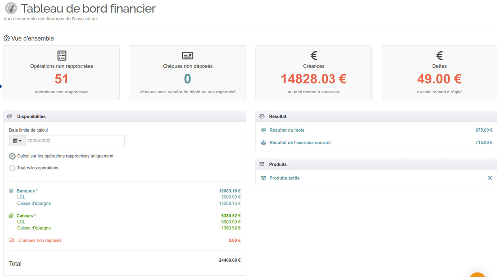 - Comptabilité : suivez vos dépenses, vos revenus et générez des rapports ou documents comptables pour en discuter avec les autres membres de l’association.