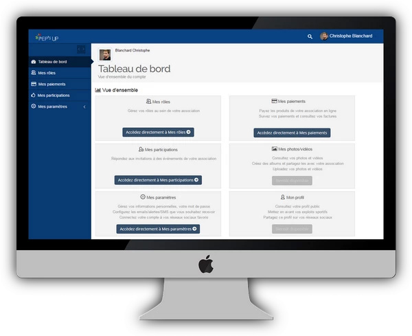 - Gestion des membres et des adhésions : les membres peuvent s’inscrire et payer leurs cotisations directement via la plateforme. Pep’s Up permet aussi de créer des profils et de visualiser les informations de chaque membre.