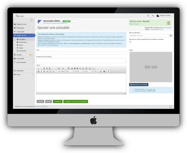 - Création de site Internet : Pep’s Up permet de concevoir et de gérer un site web professionnel pour votre association. Le site est personnalisable en fonction de vos besoins. Vous pouvez également y ajouter une boutique en ligne, si vous vendez des articles et/ou services.