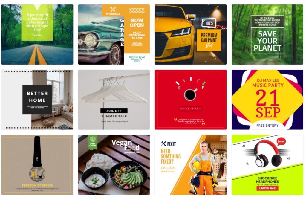 Vous retrouvez des templates avec les formats adaptés pour de nombreux médias sociaux suivants : Facebook, Instagram, Twitter, LinkedIn, Pinterest, YouTube, Twitch et Blog. L’outil est en mesure de redimensionner automatiquement vos visuels aux tailles souhaitées pour vos campagnes multicanaux.