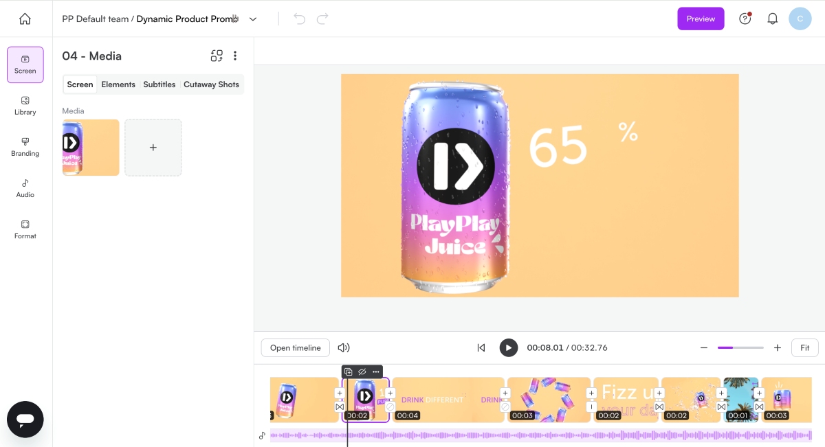 L’interface intuitive de PlayPlay vous donne accès à de nombreuses fonctionnalités pratiques pour vous aider à créer de A à Z des vidéos performantes et de qualité professionnelle, comme par exemple :