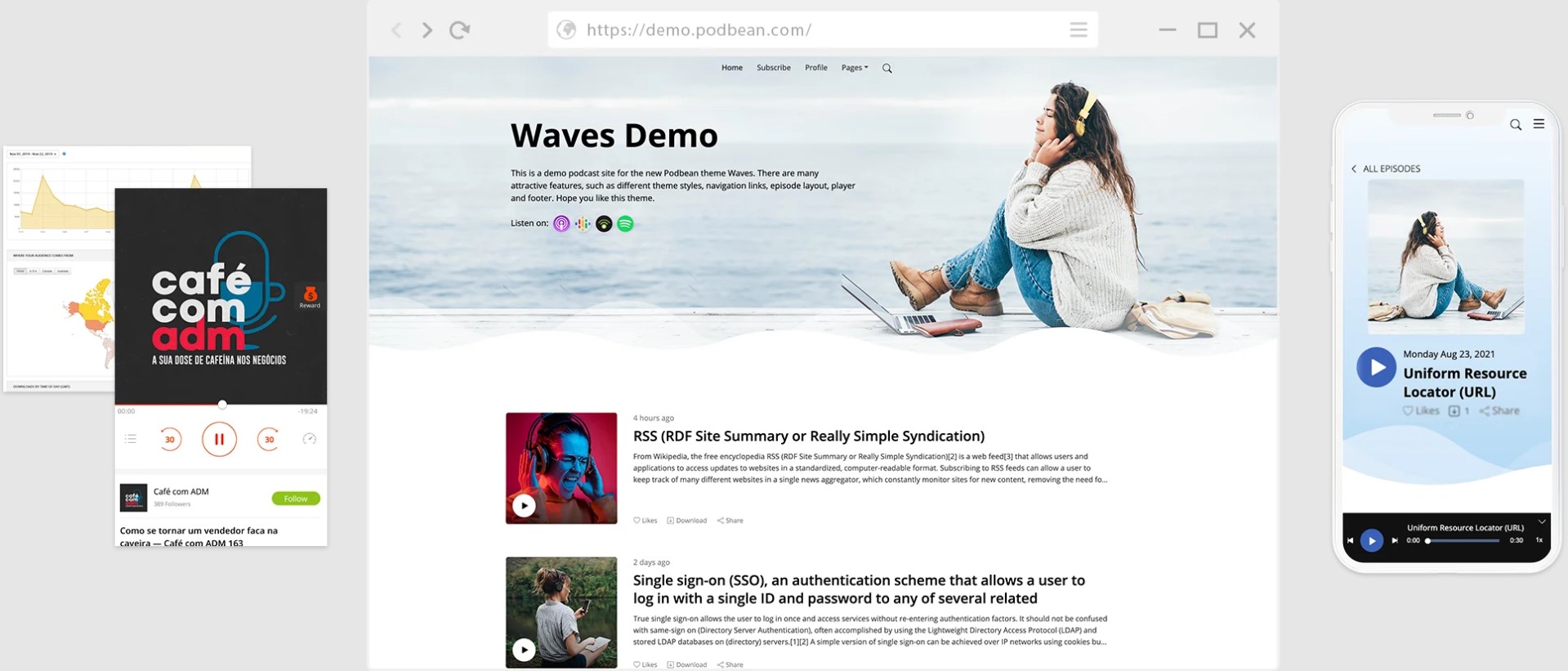 - Publication de podcasts : grâce à une interface intuitive, publier un podcast se fait en quelques clics. Choisissez un thème et personnalisez-le, créez une adresse de marque, publiez depuis votre smartphone ou encore programmez la publication d’épisodes à des heures choisies.